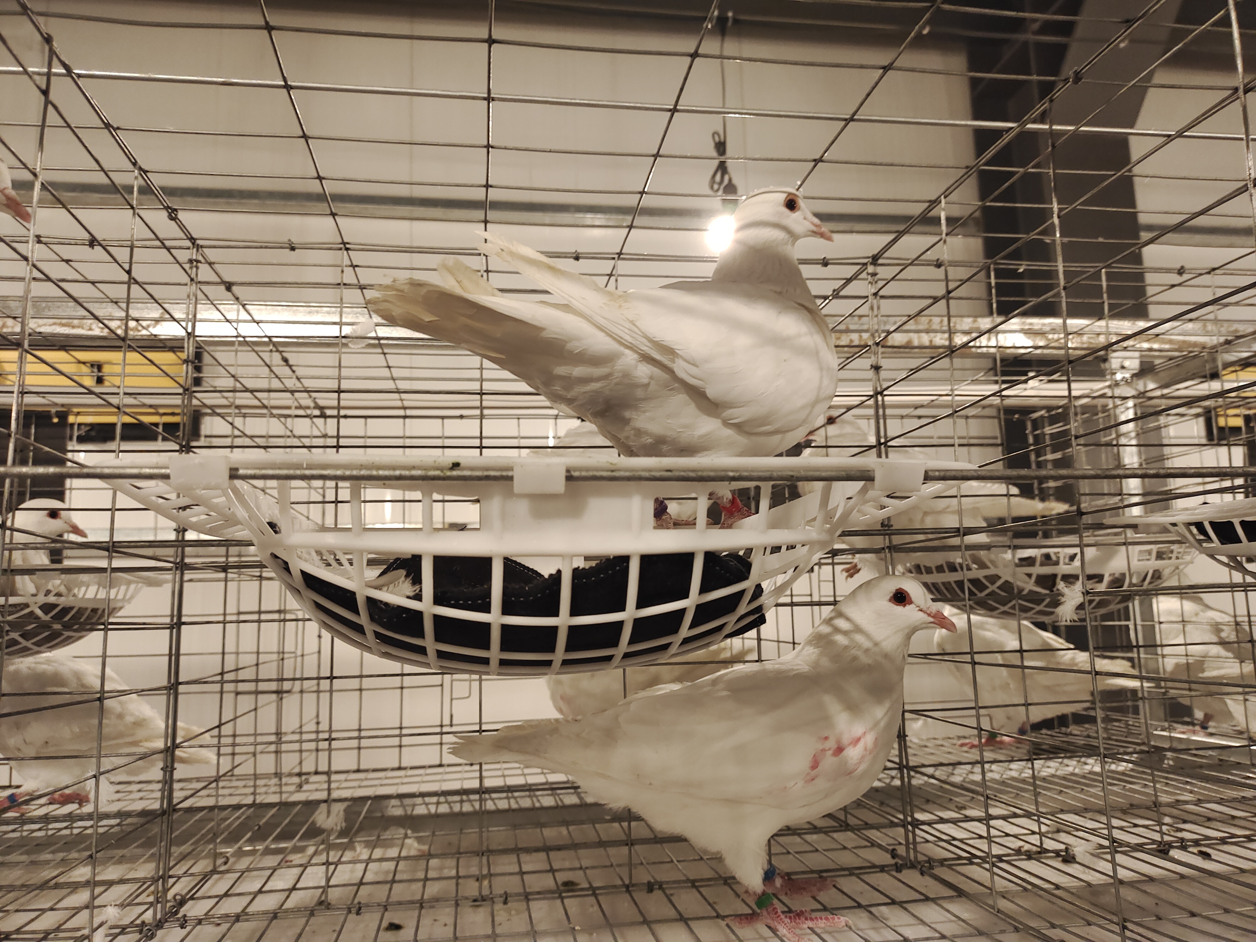走進(jìn)鴿舍,一排排干凈整齊的鴿籠映入眼簾。每個(gè)鴿籠里都有一個(gè)公鴿和一個(gè)母鴿住在一起,鴿籠里有個(gè)小窩,窩里有鴿蛋,有剛孵化的小鴿子。“夫妻倆”時(shí)而追逐打鬧,時(shí)而喝水吃食,時(shí)而咕咕咕“唱”個(gè)不停,場(chǎng)面十分熱鬧壯觀,這就是湘佳股份黃木崗種鴿繁育基地。